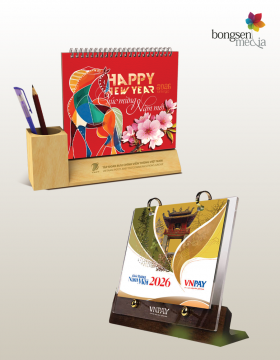 Đế lịch bàn gỗ đặc biệt 2026 được chế tác từ chất liệu gỗ cao cấp, mang đến vẻ đẹp sang trọng và độ bền vượt trội. Bộ lịch được in ấn trên giấy chất lượng cao, thiết kế tinh tế, hình ảnh sắc nét, vừa hữu dụng vừa có giá trị thẩm mỹ. Đây là sản phẩm lý tưởng để trang trí bàn làm việc và cũng là món quà tri ân ý nghĩa dành cho khách hàng, đối tác trong dịp năm mới.